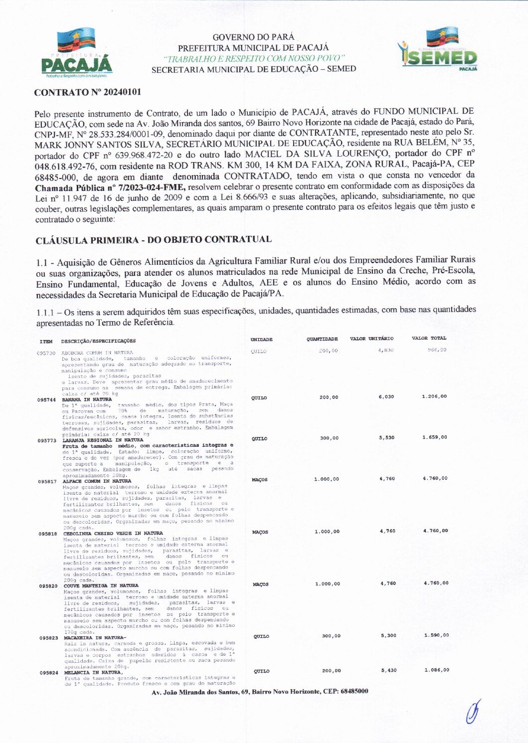 2 – CONTRATO Nº 20240101 – MACIEL ASS ASS